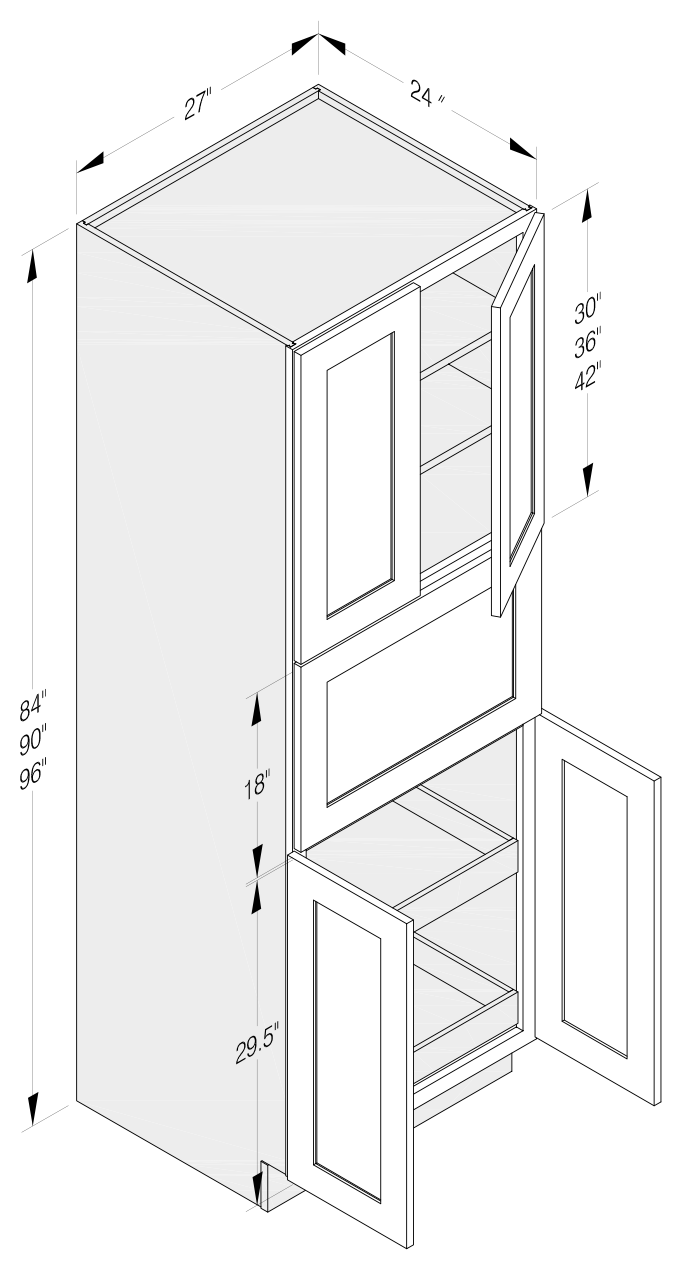 MICROWAVE PANTRY 4 DOOR 1 DRAWER 2 ROLLOUTS 2 SHELVES